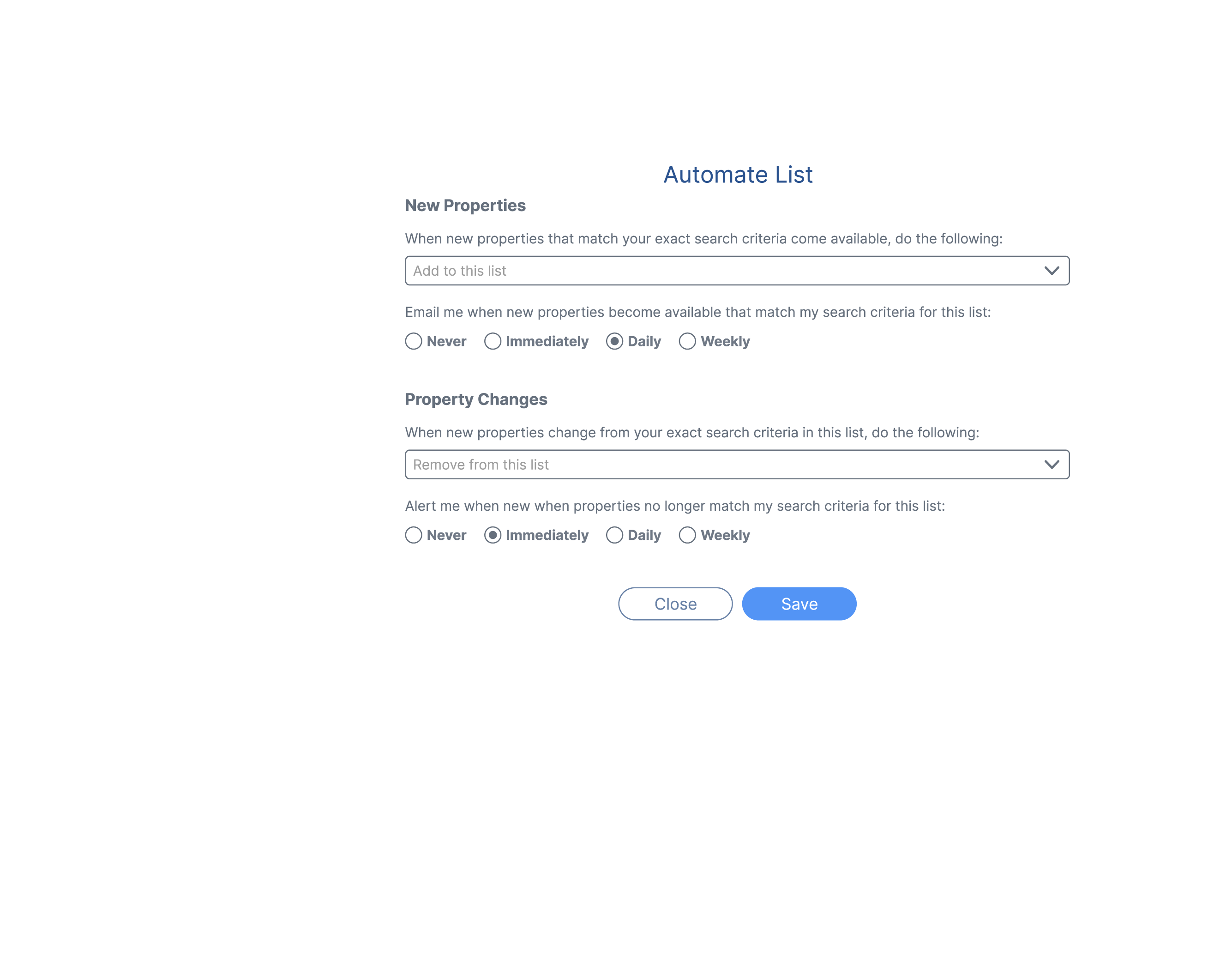 PropStream's Saved Search Feature remembers your search preferences, so you don't have to keep entering them. Simply set your filters, input your market, and hit "Save Search" to keep it handy above your map. Lead Automator, on the other hand, automates your property lists, adding relevant properties and removing outdated ones.